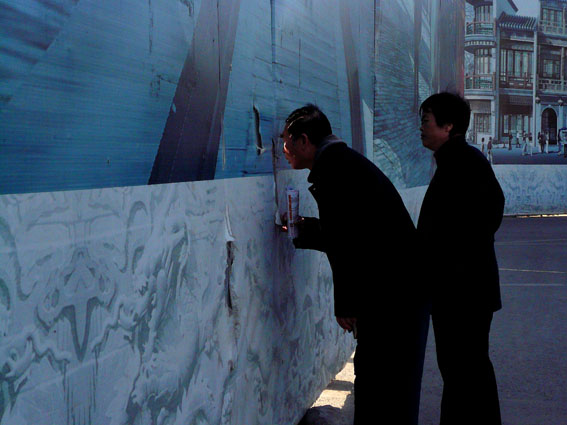 Molti isolati e addirittura alcuni quartieri sembrano essere stati rasi al suolo di recente e guardando la città dalla Torre del Tamburo si individuano chiaramente le grandi ferite di macerie aperte dalle ruspe nella trama continua e regolare degli edifici. E’ difficile capire quale misterioso piano presieda a questa massiccia riorganizzazione urbanistica anche perché è raro trovare cinesi disposti a parlare apertamente di simili questioni. Certo è che intere fette di città, con i loro cortili, i bagni pubblici e le gabbie dei pappagalli appese alle finestre sono state cancellate nel più assoluto silenzio e sapere dove siano finite le migliaia di persone che ci vivevano è pressoché impossibile (almeno da qui, dove molti siti internet sono bloccati e tutti i forum accuratamente censurati).
