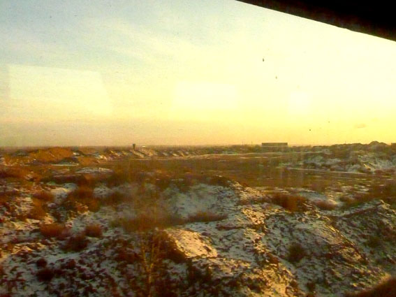 Poi le montagne digradano in una piana brulla e dissestata in cui si aprono grandi crepacci, come enormi vene profonde una decina di metri. L’aria si fa ancora più fredda e una sottile lastra di condensa ghiacciata sul finestrino del treno copre la vista.