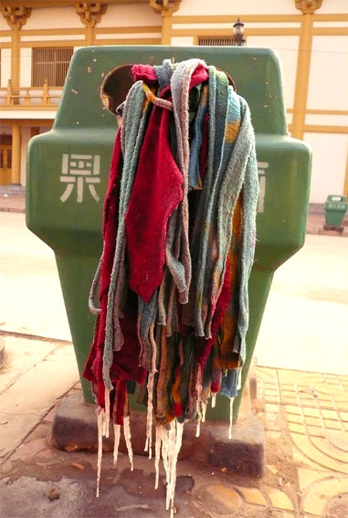 Un tempio aggrappato ad una ripida parete rocciosa, sfida alla gravità e assurdo monumento alla scomodità ascetica. Un luogo magico, se non fosse per le comitive di turisti cinesi con i loro maledetti megafoni, una piccola meraviglia che si apprezza certo più pienamente senza le dita dei piedi sempre sull’orlo del congelamento e le piccole stalattiti che giureresti si stanno formando a partire dalle tue narici. Un monumento alla tolleranza religiosa nelle cui minuscole stanze Buddha, Confucio e Lao-Tze siedono pacifici l’uno accanto all’altro e guardano la parete di roccia prospiciente da dietro i loro occhi cavati (sic).