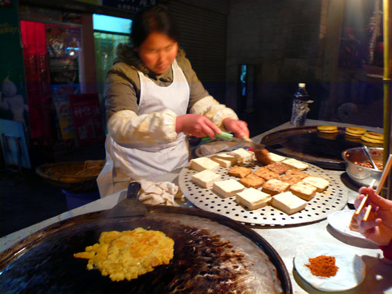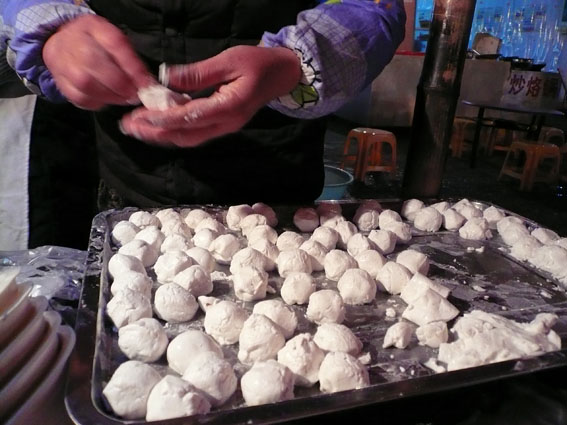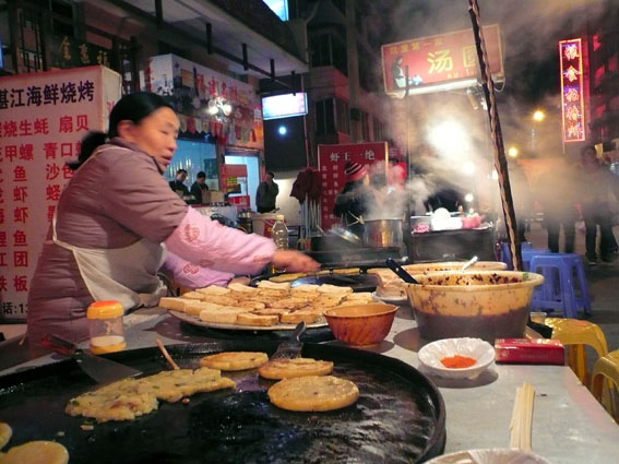 Polentina e palline di riso dolci, mercato notturno di Kaili.