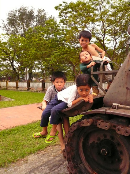 bambini sulle macerie del colonialismo, o forse macerie dell’utopia del sociualismo asiatico. belle foto ciao