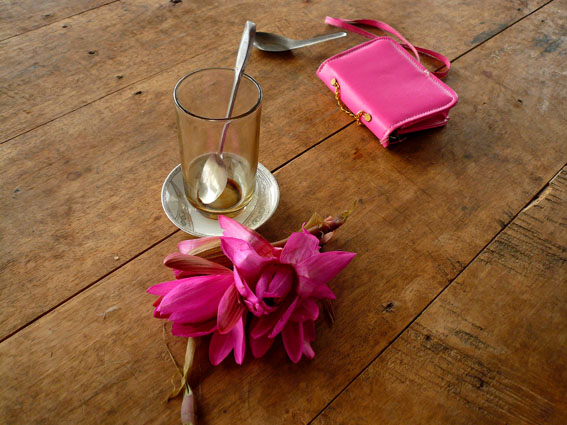 Le occasioni di svago si limitano, sembra, alle cerimonie che si svolgono di sera nella pagoda della zona in cui persone di quattro generazioni diverse si siedono su stuoie nell’equivalente della sala della parrocchia, mangiano insieme biscottini, bevono CocaCola, chiacchierano e, nella fattispecie, si domandano chi accidenti possiamo mai essere noi. Se alla pagoda non c’è niente di divertente si sta a casa in religiosa attenzione davanti alla tv, la cui grande antenna satellitare troneggia nel prato davanti a casa tra le chiocce coi pulcini, come un ufo atterrato lì e mai più ripartito. Si sta bene in effetti: la sveglia verso le cinque e mezzo e il primo pasto subito dopo, poi una lunghissima mattina seduti intorno a un tavolo, cucinando qualcuno, andando a trovare i vicini o offrendo un caffé al nonno che passa di lì qualcun altro, tra un pisolino sull’amaca e un giro in motorino per i campi. Poi si pranza, ancora tutti insieme, e poi anche il pomeriggio trascorre come la mattinata, con le bimbe che giocano a far minestrine di terra e semi e i grandi che si rilassano sotto il pergolato. Alle cinque si cena e così via, un giorno dopo l’altro. Noi pensavamo a questa calma tenace che somiglia a una sorta di felicità perduta. Il nostro bonzo invece, avvoltolato nel drappo arancione e guardando ispirato la valle pianeggiante intorno a casa sua, ci parlava di sviluppo, di fabbriche che nella fantasia vede già ergersi e sputacchiare fumi e fluidi in un punto là in fondo, di strade asfaltate e di trattori nei campi al posto dei soliti bovini a tirare l’aratro. E’ un desiderio comprensibile e giusto ma noi più viaggiamo e più siam perplesse.