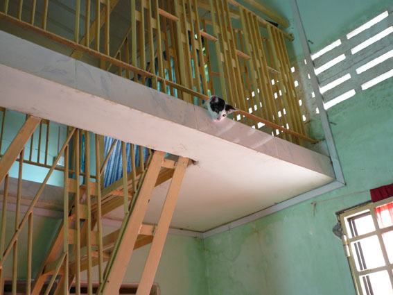 La moka (ce l’hanno prestata degli italiani che vivono qui) funziona a meraviglia con il caffé del Laos. Certo va bene anche il caffé vietnamita, ma la consistenza con il cafè Lao è veramente perfetta. Dopo colazione, banane e biscotti di riso, sono andata a comprare il ghiaccio (il blocco da mille riel dura circa ventiquattrore). Scendendo mi sono fermata dai padroni di casa che abitano al primo piano per parlargli delle inondazioni domestiche nel loro appartamento e per sollecitare un loro interessamento. Erano seduti a tavola, i nostri cinesi: mi hanno guardato tutti sorridenti, come fosse una domanda che si aspettavano, e mi hanno assicurato che avrebbero provveduto. Dopo una decina di minuti hanno mandato di sopra la nipote di provincia e la ragazza alla pari che vivono insieme a loro, così equipaggiate: una piccola ascia, del filo da pesca, un sacchetto di quei chiodini che si usano per fissare i fili elettrici al muro, due alti sgabelli di legno e un enorme tenda da doccia di plastica azzurra a losanghe. Hanno impiegato due ore buone a impacchettare, in modo decisamente fantasioso, la parte alta della facciata posteriore della casa, non senza aver prima convocato per un consulto sulla realizzazione una mezza dozzina di esperti del condominio e di aver assoldato una terza aiutante, che ha però passato la gran parte del tempo a contemplare la carta del Mondo appesa al muro, e anche la mappa di Phnom Penh, con la stessa stupita meraviglia.